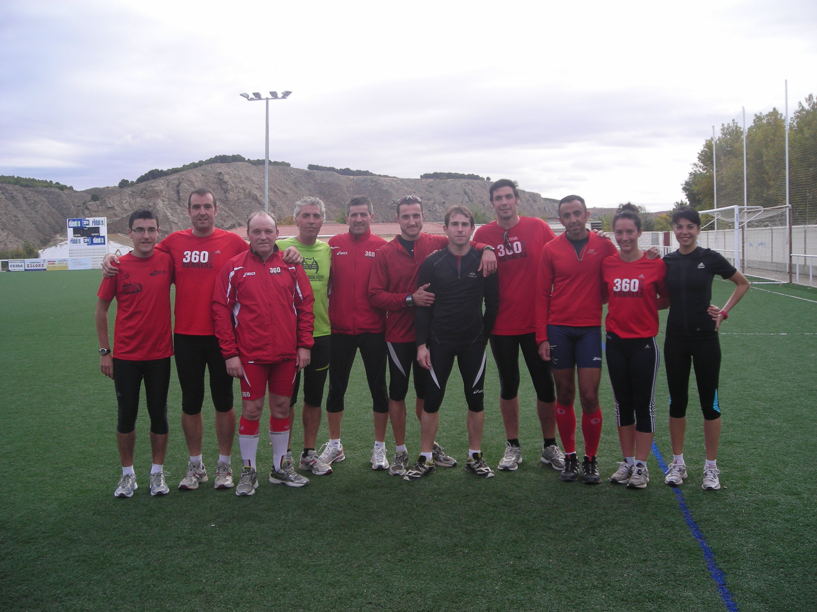 Este domingo, 31 de octubre, fuimos invitados por unos amigos de Andosilla a un entrenamiento conjunto con el 360º Riojarunners. A pesar de que todos los pronosticos anunciaban lluvia, al final la mañana se quedó ideal para la practica del running. A las 09’30, en las piscinas de Andosilla, nos encontrábamos un buen grupo de amigos dispuestos a disfrutar del running. No faltaba ningún ingrediente, buena compañía, temperatura idónea y sobre todo, muchas ganas de correr, por lo que todo presagiaba que nos lo íbamos a pasar genial. Para remate, nuestros amigos locales, Cristobal, Zenón y Juanra, nos habían preparado un almuerzo para quitar el hipo, con buen vino de la tierra, cafe y unos chupitos de licor para licuar un poco la chistorra. Después de casi 18 km por los maravillosos senderos andolanos, con bucólicas vistas que nos anuncian ya la presencia del invierno, en los que disfrutamos como enanos, nos esperaba una ducha caliente reparadora. Al final dimos buena cuenta de las viandas, con una mas que animada charla, en la que todo-as nos pusimos al día en nuestras vivencias particulares, pues alguno-as hacía tiempo que ya no nos veíamos. En fin, que una gran mañana de entreno, en la que agradecemos a los anfitriones su buen hacer, y es que, cuando todo está bien organizado como está mañana y las ganas de running son tantas, nunca nada puede salir mal. GRACIAS, RUNNERS DE ANDOSILLA , GRACIAS RUNNERS DEL 360º.