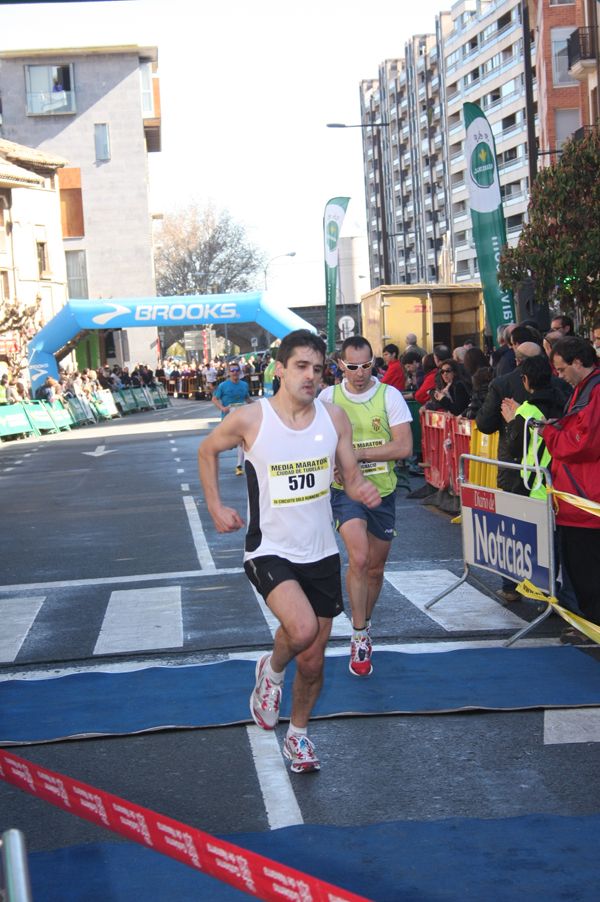 Ya hemos agotado todos los calificativos a la hora de describir el quehacer de Nacho Narvaez en las competiciones en las que ha participado. Le faltaba una grande, un medio salmón, y como no podía ser de otro modo, la ha terminado a lo campeón, con un tiempo increíble de 1 hora, 27 minutos y 28 segundos, voló sobre Tudela, polinizando entre la gente entendida, la sensación de que es un gran corredor, un superclase, y que ha poco que siga su preparación, seguirá mejorando sus tiempos. Su clasificación, el 112 de casi 600 corredores, lo dice todo. Es una media muy dura, mucho asfalto, mucho poligono, tramos grandes con poca gente…pero a el, eso le da igual, y sostuvo ritmos de 4’06 el km, algo insólito para este biker reconvertido al running. Solo tuvimos un representante del Club, pero llevamos al mejor. Gracias Nacho y a seguir así. También queremos destacar la presencia de nuestro paisano Pedro Hernandez Luri, del 360º, que como siempre, estuvo a gran altura. Bravo, Pedro, eres todo un diablo rojo . En resumen, bonita mañana para correr, otra prueba del Circuito solo runner disputada con gran afluencia de corredores y otra buena carrera de nuestros paisanos. Os dejamos un link con la llegada de Nacho y otro con la clasificación absoluta.