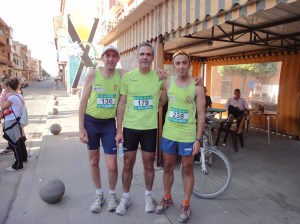 Que buena tarde la del sábado, para disfrutar del running, con nuestros amigos del Club de Atletismo de San Adrian. Todo era ideal, quizás un poco de mas de calor, pero nos daba igual. Gente que ama el running, con una organización excelente, siempre con el apoyo de los colaboradores de la organización o de la gente que se acercaba a curiosear…mezclada con ayuda solidaria , y removida por los diablos rojos, los 360º, que ya no es noticia que vayan mas de 20 runners a una carrera, lo metemos en la cazuela de este gran pueblo que es San Adrian, con un recorrido espectacular, mas duro de lo que parece a priori, y nos sale una media maratón para repetir todos los años. Ya tendremos tiempo de hacer una crónica mas extensa, solo reseñar el carrerón que hicieron Carlos y Jesus Mari. El primero se quitó la espina del año pasado, con una carrera que le supo a victoria, por el tiempo , muy cerca de la hora 35 minutos y sobre todo por las sensaciones con las que corrió. Por otro lado, Jesus Mari, tenía ante sí, un reto muy dificil, terminar su primera media maratón , distancia que nunca había corrido. Pues lo superó y con creces, terminando con una cara de alegría, no por que no le costase, que sudó de lo lindo, sino por que era consciente del gran paso que acababa de dar. Su carrera, la podíamos guardar para siempre y exponerla como ejemplo de superación, como membrete de nuestro club: DISFRUTAR DEL RUNNING, por que cuando las victorias se sufren, se disfrutan mas. Gracias a Olmo y a su familia por el apoyo y las fotos y también a Jesús e Ignacio por darnos su apoyo y animarnos. Pero sobre todo, gracias a Carlos y a Jesus Mari.