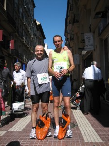 Nuestro buque insignia, Carlos Vidondo, se desplazó este fin de semana hasta Zaragoza para ver a unos amigos, y como siempre lleva sus zapas a todos lados, aprovechó la ocasión para correr la media de la capital maña. Pero Carlos, está que se sale. Lleva muchos años corriendo en soledad por casi todas la partes de España y lo que es mas duro, entrenando también solo. Ahora, que está entre nosotros, compartiendo entrenamientos, dándonos consejos a todos, amoldándose siempre al ritmo del que va mas lento, en fin, disfrutando del running en compañía, se le ve mucho mas motivado y se le nota.Está como un niño con zapatos nuevos, con ilusión renovada, y se está marcando unos tiempazos que no solo son buenos, como la hora y 36 minutos que ha realizado en Zaragoza, sino que las sensaciones con las que termina la prueba, son inmejorables. De esto se trata, de correr, de correr a gusto, intentando superar nuestras marcas, pero también disfrutando de este deporte y saber que cuando llegas a la meta, te has superado, pero también te lo has pasado genial. Personalmente, una de las cosas que mas me ha sorprendido de este joven club, ha sido encontrarme con este gran corredor y mejor persona, que tan volcado está con nosotros. Nos alegramos todos de que te vaya tan bien, Carlos, y gracias por representarnos de esta magnífica forma.