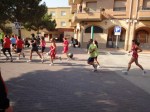 Siete runnerabejas nos reunimos hoy en Andosilla para disputar la 2ª edición de su carrera popular. Tres, David, Peñas y el que suscribe, Pablo, fuimos corriendo desde Azagra, pues el recorrido de la carrera era muy corto (5km 300m) y no nos venía nada bien a los que estamos preparando la Behovia. Los demás, Olmo, Noelia, Fernando y Jesús, fueron en vehículos y una vez allí tendrían que recoger los dorsales de los demás. Nada mas llegar, susto para Noelia, ya que con su edad (14 años) la obligan a participar en su categoría. Ella no quiere, pero la organización la medio obliga y toma la salida sin apenas calentar y estirar en una carrera practicamente de velocidad pues tiene 1km de recorrido. A pesar de todo, Noelia no se amedrenta y sale a por todas, terminando cuarta en féminas. Cuando arrivamos el resto de corredores hasta la salida de Andosilla, Noe nos cuenta lo sucedido y se muestra un poco contrariada por no poder haber terminado tercera, pero al mismo tiempo está contenta por que lo ha dado todo. Para animarla un poco mas, le digo que corra con nosotros, que la organización no le va a poner pegas, y, ya se termina de alegrar del todo, por que ella lo que quiere es ser una mas del equipo. La salida se demora un poco, pero no pasa nada, ya que es preferible esperar 5 minutos mas, a salir a la hora y poner en riesgo el fisico de los corredores. Esos 5 minutos nos sirven para darnos cuenta de que hay una chica con una pinta de corredora que Olmo a su lado parece gorda. Se lo comento a ella, y , me echa una pequeña bronca, por mediatizarla ya de algún modo antes de salir, y como siempre, tiene razón. Una vez que los municipales se cercioran de que todo está bien, se da el chupinazo de salida. Olmo, como siempre sale como una bala, yo voy con ella, por detras Peñas nos sigue como puede, luego Jesús, Fernando, David y Noelia cerrando el grupo de runnerabejas. Estas carreras no conocen de tacticas, ya que desde el principio hay que salir a tope, son pocos kms y no puedes reservar nada, ya que luego no da tiempo a recuperar. Y así pasa en esta. La gente lleva un ritmo endiablado. Olmo y yo vamos por debajo de 4 minutos el km y aún así no paran de pasarnos corredores. Peñas ya nos ha cogido y aprovecha un poco para tomar aire. Los demás vienen detrás como pueden. El recorrido es bonito, variado y al pasar por las calles del pueblo, mucha gente nos anima. Olmo, segunda en mujeres, va muy bien, parece una locomotora de como resopla, pero la miro a la cara y el gesto no es de cansada ni crispada. Peñas ya ha recuperado y también va comodo. A Jesús le va costando mas, pues estas carrera tan rápidas no le van nada. Fernando también sufre, pero se le ve mas fácil que otras veces.David acompaña a Noelia, que pega un trago de su inseparable botella de agua. Los kms van pasando y empezamos la subida a la Iglesia, unas durisimas rampas de 1km aproximadamente. Le digo a Olmo que controle un poco, cosa que hace, y junto con Peñas, hacemos que la dura subida no lo sea tanto. Nos sorprenden un grupo de corredores, que se unen a nosotros y siguen nuestros consejos a pies juntillas…luego nos dieron las gracias..jajaja. A Jesus la cuesta se le hace aun mas dura que la carrera en si….a Fernando le pasa lo mismo e incluso piensa en parar un poco, pero no lo hace y llega hasta arriba. Por detrás David y Noelia, siguen a su ritmo, exigiéndose, pero con cabeza. Los ganadores, ya llegan a la meta, con tiempos increibles, y la primera chica es la delgadita de la salida, que vuela y nos saca casi dos minutos. Eso, ni nos inmuta, Olmo ya sabe cual es su ritmo, sabe cual es su estado de forma,y con solo dos días de entranamiento semanal, es un milagro lo que hace. No se pueden pedir mas peras al Olmo, pero si se las pedimos ella nos las da en forma de trofeos, y entra en meta, consiguiendo la segunda plaza en absoluta de mujeres, escoltada por un servidor y Peñas, otra gran carrera de Fran. La gente la aplaude como si fuera la campeona, y,por un momento, pienso que la verdadera patrona de Andosilla es también la de Azagra. Luego llega Jesús, que como siga así, le va a poner las cosas muy dificiles a Victor en nuestra liguilla. Enhorabuena Jesus, que se marca un tiempazo en una distancia muy fea para el. Un minuto después, entra Fernando, cabeceando, pero mas fresco que una lechuga. Tenía muchas ganas de terminar una carrera sin sufrir tanto como en las otras, y lo ha conseguido. Tiempazo para Fernando.Mas tarde entran David y Noelia. David, no se ha dado cuenta, pero se ha cascado 15km y el tio está como si nada…este chaval hace honor a la reconocida fama de superhombres que tienen nuestros apagafuegos. Enhorabuena David. Y de Noelia que digo…pues que poco a poco, con modestia, sin apenas hacer ruido, se está convirtiendo en alguien muy importante para este club. Gracias por todo Noe, y muy bien por lo conseguido hoy. A veces, uno termina una carrera y cree que lo ha hecho bien, y luego no es tanto o viceversa, pero cuando llegas a la meta, y ves como te mira la gente, como miran a Olmo o a los otros runnerabejas….ves la alegría de Carlos, el marido y fotografo ocasional del club, y como en apenas 20 minutos, nos hemos ganado el cariño de los andolanos, se tiene la certeza que se ha pasado un gran día, otra gran jornada de running y sobre todo, otro mañana de solidaridad y amistad entre los amigos de este pequeño club. Que orgullo se siente, cuando nos ven y dicen,» mirad, los de Azagra», y cuando nos vamos comentan «Oye, que majos los de Azagra». Con esto, ya estamos colmados, y con el trofeo de Olmo, es ya la leche. Os dejamos unas fotos , gentileza de Carlos. Gracias a tod@s por hacer de un lacónico domingo, un día feliz.