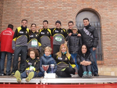 Comienza la mañana un poco desorganizada, sobretodo para la que suscribe que entre atender a los nenes y buscar la cámara de fotos llegamos tarde al punto de encuentro y los demás ya habían salido hacia San Adrián. Allí estaban desde bien temprano los más peques del club que iban a participar Mario y Paula y sus padres Vitorino y Mónica para darles ánimos, junto a toda la familia de Tania (sus hijos Guille y Carlos, su marido Carlos, padres y hermana, gracias a todos por ser tan amables con nosotros). El primero en participar es Guille, el hijo pequeño de Tania, que lo hace de maravilla. A continuación Carlos (el otro hijo de Tania) y Mario en una carrera muy apretada quedando en unos buenísimo 4º y5º puesto,( su hermano Víctor no ha podido participar pero a animado como el que más, que se preparen porque este chico promete muchiiiisimo), después le ha tocado el turno a Paula, le han puesto una distancia muy larga, más de 1 km, se le ha hecho un poco larga pero en un momento cuando le han dicho lo orgulloso que iba a estar su padre ha sacado todas sus fuerzas y ha terminado como una campeona.