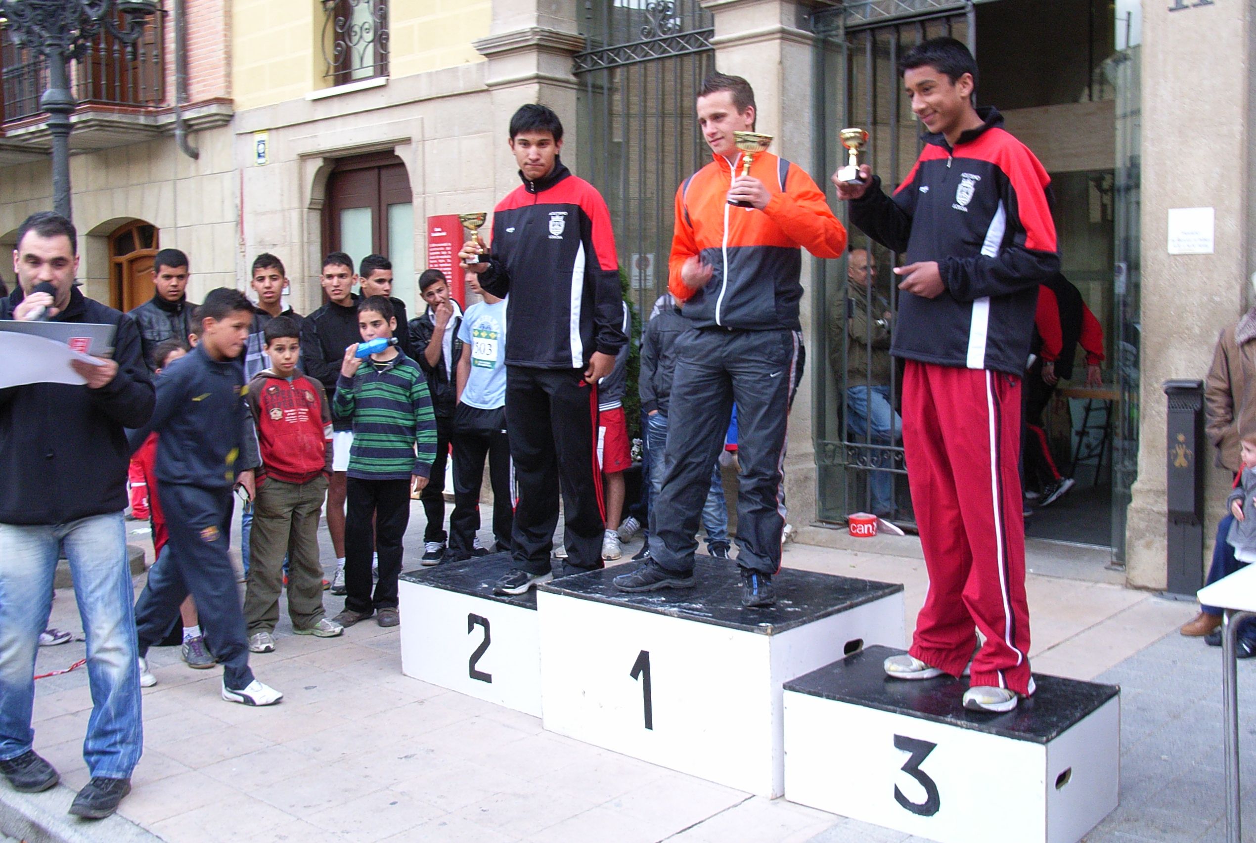 Después de nuestros cadetes le tocaba el turno a los mayores, en este caso a 2 veteranos Vitorino y Olmo (ya fastidia eso de veteran@ pero bueno la edad es la edad y lo que cuenta es que ahí estábamos llenos de ganas e ilusión por participar y hacerlo lo mejor posible). Las chicas tienen que dar 2 vueltas (6km) y los chicos 3 (9 Km.), hay gente muy buena porque dan compensación económica pero bueno eso es lo de menos.