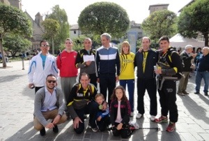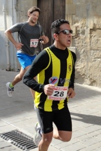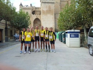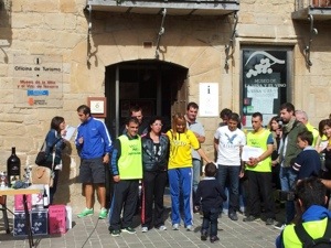 Este domingo comenzaba el circuitosolorunners , uno de los motores principales que ha provocado el auge del running popular en nuestra «comarca». Esta carrera de OLITE no sólo era el comienzo del prestigioso circuito, también es de nuestra liguilla interna y el de nuestra temporada invernal. Por esto, y por que sospechábamos que a la ganadora del año pasado, nuestra compañera Olmo Vidondo , le iban hacer la entrega de su trofeo, muchos pensábamos que esta carrera era ineludible y que de una forma u otra teníamos que hacer acto de presencia. Y allí estábamos, unos cuantos corredores de Azagra, Alberto, Jesús Mari, Carlos, Fernando, Jorge, José Ramón , Carlos Sobejano y Pablo. No muchos, pero con una ilusión que desbordaba a grupos mucho más numerosos. La mañana estaba ideal, OLITE, precioso y la ocasión no podía ser más pintiparada para hacer una buena carrera. Después del preceptivo café comenzamos la ceremonia de nuestra puesta de dorsal, con Carlos dándonos lecciones prácticas que a la par de sencillas son sorprendentes , principios fundamentales de un buen ingeniero. Calentamos por las estrechas calles de Olite, y uno, que aunque se sienta Navarro como el que más, no deja de sorprenderse de la belleza de esta provincia, y de este pueblo en particular, y siente en las piernas el privilegio de correr por unas calles con tanta historia…y por momentos uno parece especial. Nos encontramos con Carlos Sobejano, un futbolista y buen jugador de padel reconvertido a runner, y que siente los colores de la Peña Azagresa como el que más. Comentamos un poco la jugada con el y de repente, esta vez no es una forma de hablar, de repente, dan la salida y nos encontramos saliendo del pueblo a toda pastilla. Rápido encaramos pistas buenas de tierra por las extensas llanuras Navarras. Pablo toma la cabeza de los nuestros, seguido muy de cerca por Jorge y Carlos. José Ramón, Alberto ySobejano tampoco están lejos, mientras Jesús Mari y Fernando van a su paso, que no quiere decir más despacio, ya que como hemos dicho muchas veces, el esfuerzo lo medimos en valoraciones personales y no generales. Jorge adelanta a Pablo y da muestras del excelente deportista que es y que las esperanzas que tenemos en el no son infundadas. Carlos sigue muy cerca, pero ya se va dando cuenta que no, que hoy no es su día y no logra encontrar su ritmo. José Ramón disfruta y se encuentra súper agusto como Fernando y Jesús Mari. La carrera avanza y el recorrido va sorprendiendo a los corredores, con subidas y bajadas, que sin ser duras, hacen mella en los corredores. A la altura de la milla 5,Jorge esta irresistible, con un resacoso Pablo detrás, al que nuestro buen amigo del inferno, Miguel Ángel trata de coger y así sumar a enésima vez que termina delante del narrador. Carlos sigue sin encontrarse, mientras un sorprendente Sobejano crece y crece, adelantando multitud de corredores. Los demás se han estabilizado, y no hay sorpresas reseñables. A tres km de Olite, Sobejano da buena cuenta de Pablo,mientras Jorge disfruta como un cosaco de la carrera y de las buenas sensaciones. Miguel Ángel ya ha desistido de coger a Pablo, y Carlos sufre mucho …..Todos rondan la hora y los 15 minutos, exceptuando a Jorge que estuvo por debajo de este tiempo. En la llegada buen vino, mejor ambiente y Olmo, que se cobraba todos los esfuerzo del año pasado. Tomamos una caña, relatamos nuestra carrera y una vez más nos damos cuenta de que a pesar de ser el mismo trazado, cada uno lo ha realizado de su manera particular con su historia única y diferente a la de los demás. Después, cada uno retomamos la rutina, unos volviendo a casa y otros, aprovechando la coyuntura, pasan una jornada increíble al lado de sus familias.Enhorabuena a todos y hasta la próxima.