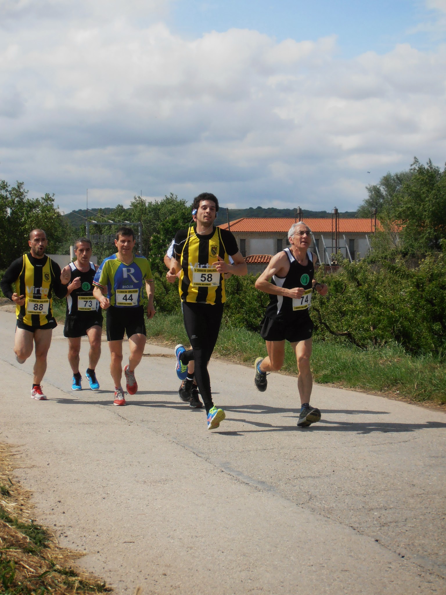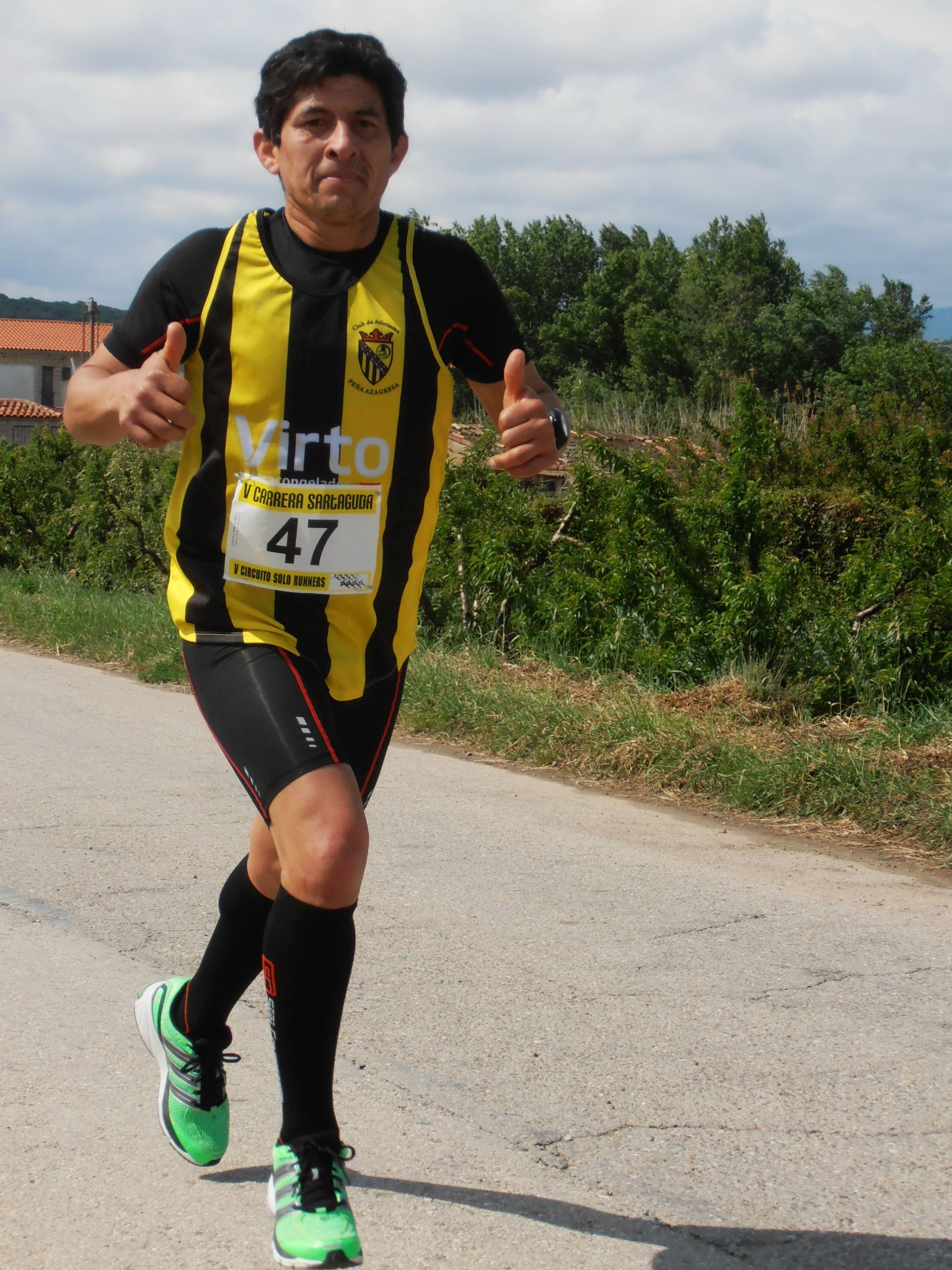 Afrontabamos esta carrera de Sartaguda, como otra mas del Circuito solo runners. La mala climatología, además de provocar varios procesos gripales entre nuestros socios, nos había hecho desistir de carreras, que aunque mas atractivas, tambien eran mas lejanas y mas duras, por lo que al final, nos reunimos unos cuantos runnerabejas en este pueblo marcado por los trágicos sucesos en la guerra civil. Nada mas llegar, las noticias no pueden ser mejores. La primera avanzadilla del Club, compuesta por Adrian y Rodrigo, ya habían cosechado los primeros triunfos de lo que a la postre, sería una mañana espectacular. Adrian, otra vez al podium, con una segunda plaza magnificada porque se trasladó desde Azagra hasta Sartaguda en bicicleta, rememorando los comienzos de nuestra campeona Olmo en el mundo del deporte, y nada mas bajar de a bici, va el tío y queda segundo, como si nada, sin despeinarse. Sin despeinarse es un decir, por que seguro que se dejó la piel para que las vitrinas del club sigan engordando de forma exponencial. Otra lección de Adrian, otra lección de pundonor y otra demostración del futuro que tiene este chaval, siempre bien llevado por su padre, que además de velar por su hijo, estuvo promocionando nuestra carrera de los 10km del Soto. Grandes de nuevo los dos y enhorabuena otra vez a Adrian, que un día si y el otro también, nos deja sin palabras. Luego le tocaba turno a Rodrigo, que como se ha acostumbrado a recoger trofeos, ya no lo bajan del podium ni a tiros. Tulio Rodrigo, heredero avezado de la estirpe de los Mocha, poco a poco se va consolidando junto a Adrian, como el corredor que marcará el futuro del Club, y este sin duda será esplendido. Por que ahora no hablamos de trofeos o de medallas…hablamos de caracter , de secillez y amor al deporte, y nuesttros jovenes no solo lo encarnan, sino que lo lucen a la minima. Otro podium para Rodrigo, esta vez bronce, que hacía sonreir a su acatarrado padre, orgulloso de ver a hijo involucrado en este bonito pero exigente deporte. Enhorabuena Rodrigo!!!. Pues con estas mimbres, estabamos el resto del cesto esperando a que llegaran las 11 para tomar la salida. Tulio, David, Alberto, Jesus, Roberto, Pedro y Pablo, eramos las abejas que teníamos el honor de dar la cara por la Peña Azagresa. A la salida, catarros, malas noches y rodillas doloridas, no hacían presagiar una buena carrera. La bedición del cura nos lanza por una cuesta nada mas salir, muy incomoda, pues las piernas no están muy sueltas y las velocidades son altas…Tulio, como siempre, con los de adelante, mientras por la mitad del apenas centenar de participantes, David, Pablo, Pedro y Roberto forman un buen grupo acompañando a nuestro buen amigo Miguel Angel, del Inferno. Un poco mas atrás, aberto intentando recuperarse de su paso por la maraton de Madrid, seguido por un Jesus determinado a bajar de los 45 minutos para darle candela a Victor. A los 2km aproximadamente, y ya por los caminos de tierra, Pablo aprieta un poco, lo suficiente para distanciarse un poco del grupo e intentar coger a un Tulio muy mermado por un fuerte proceso catarral. El ritmo, por debajo de 4, pero las temperaturas frescas acompañan y no se hace excesivamente duro. Según avanza la carrera, las posiciones se van determinando, con un Tulio sufriendo, seguido de cerca por Pablo. Pedro, deja muestras de su calidad y acompaña a Miguel, uno de los mejores corredores populares de la zona. David, pese a su anatomía de triatleta años 80, les sigue muy cerquita, con ritmos que hace apenas unos meses veía inviables y que ahora los afronta como pan de cada día. Luego un cansado Roberto, y las posiciones mantenidas de Alberto y Jesús. Después de una subida durísima, los corredores llegamos otra vez al pueblo, a Sartaguda, afrontando ya la ultima parte de los interminabes 10 km con 30 metros. A Tulio las insuficiencias respiratorias le han terminado por demoler, y es adelantado por Pablo, y mas tarde por un increíble Pedro y por otro mas increíble David. La última vuelta es agónica, con Pedro y Miguel intentando coger a Pablo, con David queriendo coger a estos dos, con Tulio que demasiado tiene con terminar y un Roberto que no está tan suelto como otros días. Alberto tiene buenas sensaciones pero Jesús mira el reloj y empieza a vislumbrar que hoy no va a bajar de 45 minutos. Sin duda, esa dura cuesta se lo ha puesto mucho mas complicado. En la linea de llegada, todo queda como está, con grandes tiempos de Pablo, Pedro y David, los tres por debajo de 40 minutos, a pesar de la dureza de la carrera y de tener esta algo mas de los 10km. Gran carrera la de Tulio, muy enfermo, pero que aun así, ha intentado ir con los de adelante, dejándose todo,y realizando una gran subida. Bravo Tulio, es en estas carreras, donde uno se demuestra asi mismo, que es un gran corredor. Luego llega su hermano, Roberto, del que estamos seguros que no se ha dejado nada, que tiene una regularidad increíble, siendo uno de los corredores del Club que siempre da la cara. Grande Robert.Todos, unidos en una gran piña, esperamos a un recuperado Alberto, disfrutando como siempre de las carreras, con un gesto de rabia al pasar la meta, que demuestran lo que ha sufrido, pero también delata que ha merecido la pena…muy bien Alberto. Mas tarde llega Jesus, con la cara contrariada, mirando el rejol, viendo que no consigue su objetivo, pero con una mueca de sonrisa, pues sabe perfectamente que en esta carrera, bajar de 45 estaba muy caro…bravo Jesus, y ya lo conseguirás para otra, lo importante es que sigas disfrutando y que te tomes las carreras como hasta hora, disfrutando y haciendo club, aunque este no te pague nada….jejeje. Todos nos abrazamos, nos sacamos fotos y demostramos a los allí presentes, que somos un gran Club. Hoy hemos escrito una gran página en la historia del club, al terminar cinco corredores entre los 40 primeros, y terminando los siete de forma excelente, pero permitirme 