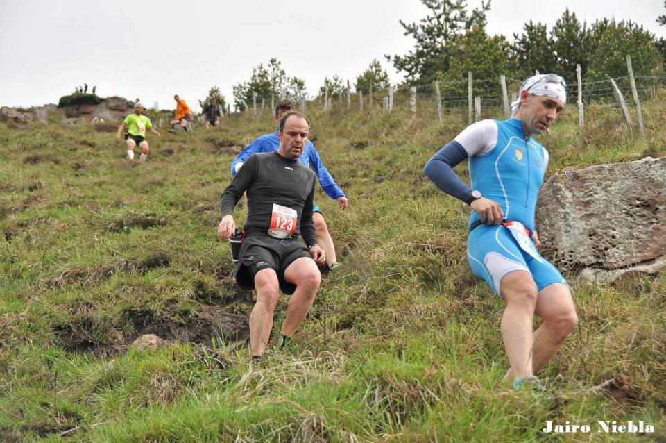 Cada fin de semana es especial para este club, pero es que estos ultimos estamos alcanzando cotas impensables hasta hace muy bien poco. El finde pasado experimentamos una carrera nocturna, que a la postre no fue tan nocturna, en la localidad de Tudela, donde se vivió otra entrañable jornada de running, terminando la jornada con unos bocatas mastodónticos que pusieron un broche gastronómico a una carrera que no gustó demasiado, y donde nuestros Mochas, Virginia y cía dejaron muestras de su calidad, con la grata sorpresa de la vuelta de Carlos Vidondo, nuestro maestro, a la competición y el regreso de Carlos Oses.Mientras nuestro intrépido Nacho Narvaez sufría con una de las pruebas mas duras del panorama nacional, los 10000 del soplao, una prueba solo para superhombres, convirtiéndose en el primer corredor del club en terminarla. Pero es que este sabado teníamos el reto de la Duatlon de Villafranca, donde varios socios del club iban a tormar parte en las diferentes modalides de esta especialidad tan de moda y que no me canso de repetir , es el futuro del deporte popular, si no se le pone coto a la desmedida locura en las que se están convirtiendo las carreras de montaña y los organizares recuperan un poco la cordura. Pues bien, Virginia, David , Miguel, Adrian y Guillermo, afrontaban el reto en solitario mientras Pedro y el que les suscribe, lo hacen en la modalidad de parejas, realizando la carrera a pie, mientras la bici la llevarían dos socios del Club hermano ciclista, la Peña Azagresa, Carlos Romero y Angel Julian Barricarte. La tarde amenazaba lluvia, y aguantó hasta que los corredores terminaron el primer tramo de 5km, con un Pedro que salió a por todas, llegando incluso a estar con el grupo de cabeza durante un tramo inicial. Con permiso de los hermanos Mocha, Pedro es actualmente el corredor mas en forma del club, con un fisico increíble, y un atrevimiento envidiable, le está aportando al club un plus de calidad y frescura, todo aderezado con humildad y una personalidad entrañable. Andaba en cabeza, como si nada, seguido por un Pablo que no daba para mas . David, es testigo muy cercano de las andanzas de ambos, que aunque iba a realizar la prueba completa, el estado de forma de nuestro iroman particular es excelente. Parece mentira que una persona con una masa muscular increíble, sea capaz de desarrollar tanta velocidad, durante tanto tiempo y en tantos frentes, ya sea en bici, corriendo o nadando. Si tuviéramos que llevar a algún socio a una prueba para elegir el deportista mas completo, este sería David. Pero es que las calles de Villafranca estaban teñidas de amarillo y negro, por que luego venían Adrian, Virginia, Guille y Miguel, todos disfrutando de la prueba y enseñando a la gente el espíritu runnerabeja. Terminamos el primer tramo, con la pareja Carlos-Pedro en una cuarta posición, y empieza el tramo de bicicleta. La carrera toma tintes épicos con una buena tormenta, haciendo que las pistas se conviertan en un barrizal para los ciclistas. Es en este tramo donde otra vez, el club da una lección de compañerismo, encarnados en las figuras de Miguel, Guillermo y Virginia, donde los tres se ayudan, se animan. Miguel, con mas experiencia en la bici, instruye a los dos sobre la marcha, y los tres juntos, forman un equipo, superando todas las dificultades, el barro, la lluvia, y la propia dureza de la prueba. Al final de las carreras, hay tres ganadores, hay trofeos, dinero, tiempos etc, pero para mi, los verdaderos ganadores son estos tres monstruos, monstruos de la amistad y compañerismo, y que cada dia, hacen mas grande al club. Adrian por su parte, sigue progresando, y como va muy bien en bici y mejor corriendo, no tiene ningún problema en superar una prueba hecha a su medida. El sigue creciendo, como corredor, como ciclista y sobre todo, como persona. Van llegando los ciclistas, como fantasmas en la niebla, llenos de fango hasta los ojos, y uno de los primeros es el fenomenal Biker-runner Carlos Romero, que rapidamente le hace el relevo a nuestro Pedro, que vuela como un pajarillo…un poco mas tarde llega Angel Julian, seguido de un magnifico David, que incluso en algunos momentos le ha superado con la bici. El tercer tramo es coser y cantar para los duos, mientras que para los individuales, supone un trauma para su musculatura, ya que los musculos que intervienen en una especialidad u otra son totalmente antagónicos. El final de una prueba épica, durisima llega, con un sorprendente segundo puesto de Virginia, en su primera participación en una combinada, con un cuarto puesto en parejas, del tandem Pedro-Carlos, y una excelente participación de todos los runnerabejas y ciclistas del club hermano.Al final, despues de una buena ducha, unos buenos bocatas de tocinillo y chistorra, regado con un buen vino de la zona, y el regusto de una bonita prueba, donde a parte de trofeos y podiums, nos quedamos con el gesto de tres campeones, Miguel, Guille y Virginia, pues como alguien dijo alguna vez, los verdaderos protagonistas son aquellos que persiguen sus sueños cuando nadie les ve…..