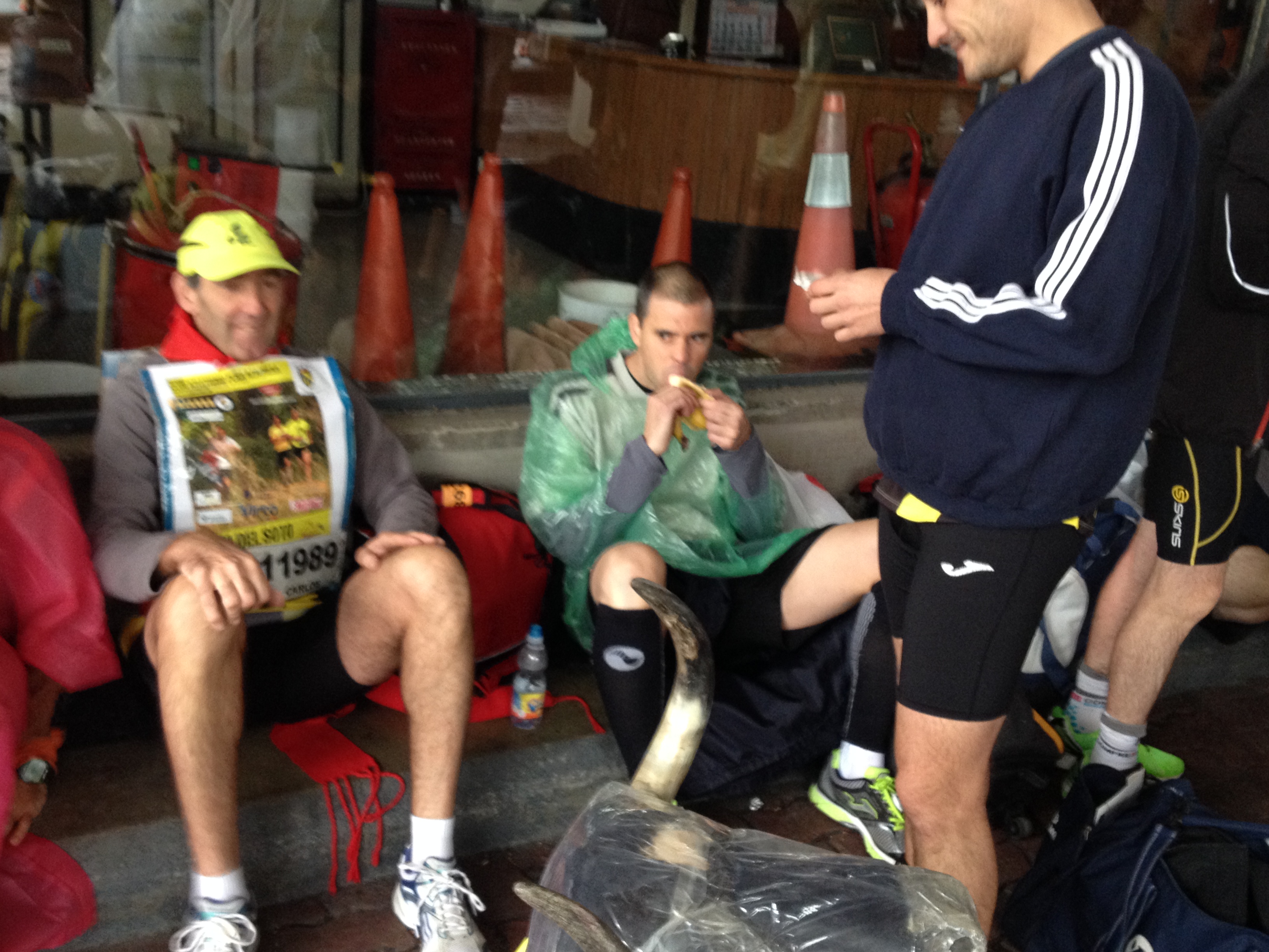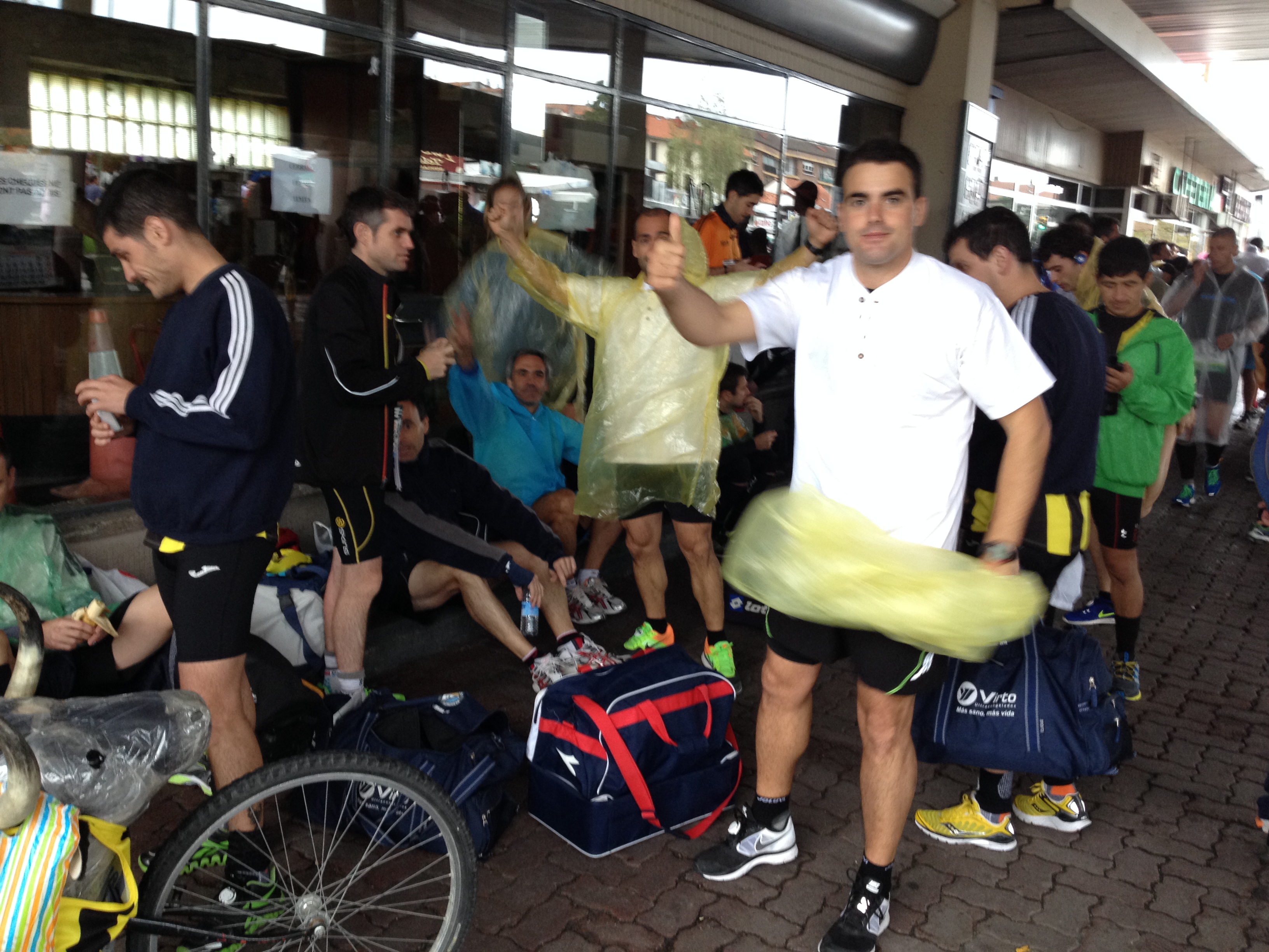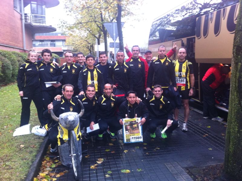 Sábado 09 de noviembre, 09’00 horas….suena el despertador. Me levanto molido. Fuerte contractura en las cervicales, dolor en la cintura y la cabeza apunto de estallar. Me pregunto como demonios pienso yo afrontar otro día en la Behobia, otros 20 km durillos, otro día duro , con una larga y fría espera y encima con previsiones de lluvia y fuertes vientos. Los dos últimos meses no han sido buenos, y , si me siento corredor, es por que sé que cuento con mucha gente detrás, no precisamente por salir a correr y entrenar como Dios manda pues mis salidas se han limitado a salir a correr dos o tres veces por semana y acudir al gimnasio siempre que me fuera posible. Mientas escucho un muy melancólico http://www.youtube.com/watch?v=Oextk-If8HQ con un café manchado de leche acompañado de una magdalena rancia miro por la ventana….el myolastan no entra, siempre he sido muy malo para las pastillas…veo pasar a tres personas no reconocibles corriendo por el motarron,,,y siento cosquillas por el estomago y me acuerdo de esa canción http://www.youtube.com/watch?v=-3ueYxrA-Zs . Con esa dignidad propia de personas que saben que tienen una misión que cumplir pero que también saben que no lo van a hacer bien, me levanto el domingo a las 5 de la mañana de ese 10 de noviembre tan esperado, el día que todo corredor popular que se precie en España tiene que sentir al menos una vez , el día de la Behobia . Es un día grande para el Club, nuestro primer viaje organizado a esta emblemática carrera, la mas prestigiosa sin duda de España, y ya en nuestro tercer año nos permitimos el lujo de organizar nuestro propio viaje, acompañado de amigos del Kandevico de Arnedo, La rioja. Según acudo al lugar donde ya nos espera nuestro autobús, siento algo especial. Es ya mi sexta vez que acudo a esta carrera, y esta vez las sensaciones son distintas. Será por la ilusión de Virginia, por la perseverancia de Fernando, por las ganas de Robert, o por la mirada perdida de Carlos…no lo sé…una vez dentro del bus, voy repasando la cara de todas estas personas hasta hace bien poco tiempo, casi desconocidas para mi….y veo en todos lo mismo, veo caras de runners, de tipos normales con una necesidad especial, correr y empaparse de la mejor carrera. Quince corredores de Azagra, quince personas especiales, que quieren vivir un día muy especial, con solo unas zapatillas como alma. También viene un toro, un toro como mascota, con nuestra camiseta, adornado de risas, comentarios graciosos, alegría y siento como mi cuerpo se destensa, se desata, y me siento vivo y me siento corredor y sobre todo me siento compañero de estas personas que aun siendo muy humildes, hoy se creen los Reyes del Mundo. Con nuestros amigos de Arnedo, iniciamos el viaje hasta Behobia, con previsiones de mucha lluvia. Nos importa un pepino. Vamos felices, contentos, es un autobús de locos. Las bromas van de un lado para otro, con tópicos ya forjados después de muchos días de entrenos….el amigo de Fernando, que no es otro que el tío del mazo, Patxi y su campo de fútbol preferido, el Mestalla…annn, el torito de Carlos… la generosidad de Jesus….todo hace que las dos horas de viaje sean de placer. Llegamos a Behobia y nos bajamos un poco atemorizados…la lluvía y el viento nos dan respeto, pero después de la foto para el Diario de Navarra, nos vamos envalentonando y nos damos cuenta que no es para tanto. Nos ponemos a resguardo en la gasolinera mas famosa para los running, y ya estamos algunos preparando las bolsas para las consignas, mientras Carlos se queda con todo el mundo con su toro azagrés. A estas alturas, yo me siento genial y estoy disfrutando como un enano de esta pre-carrera. Jose Ramon me invita a un café en el Faisan, pero no me apetece mucho ese lugar…mmmm, a ver si recibo una llamada rara y luego no puedo correr…jejeje. Después de entregar la bolsa, ya me siento un poco mas liberado, y como no hace mucho frío, estoy encantado de la vida. Damos unas vueltas por todos los lados con el torito azagrés, y nos damos cuenta que somos los protagonistas de la carrera. Carlos y Guillermo disfrutan como nunca y posan para un montón de cámaras de Tv . Virginia está como una niña con zapatos nuevos. Jesus Mari Navarro está con carucha, tiene mal cuerpo por una gastroenteritis inoportuna mientras los hermanos Mocha hacen lo de siempre, mirar de forma desafiante una carrera que saben que ellos se van a comer y no al revés. A Pedro le impresiona todo el espectáculo, mientras los hermanos Oses observan todo intranquilos. David, también alucina un poco, mientras va de un lado para otro, como buscando su lugar, al igual que Fosi, perdido en la novedad….Patxi parece preguntarse que demonios hace aquí, nervioso, esperando con incertidumbre la salida. Los primeros de la terna, somos Jose ramón, Tulio y yo, Pablo. Se nos hace cortisima la espera, y sin apenas calentar, tomamos la salida. Una gozada poder contar con el apoyo de nuestros compañeros en un salida no muy rápida, un poco abotargada de gente. Los tres adelantamos a mucha gente, sin lluvia, sin casi viento y una temperatura excelente. Nuestra meta es coger la referencia de 1 hora y 30 minutos y luego ya tomamos una decisión según nos encontremos. A los tres km ya lo hemos conseguido, y le digo a Tulio que avance, que se le ve mas fresco que a nosotros. El ir con la referencia de tiempo está bien por que sigues un ritmo estable durante la carrera, pero tiene el inconveniente de que vas muy en pelotón…por esto, decidimos avanzar un poco mas. Pero me veo con fuerzas y tiro hacía delante muy rápido . Tanto que cogemos a Tulio. Sigo apretando y poco a poco voy notando que cada vez voy a mas. No miro para atrás, no me gusta. Estoy disfrutando y no me importa nada.La carrera es un reguero de gente corriendo y otro animando. Llegamos al puerto y sigo estando fuerte. Me acuerdo de David, de como a progresado como corredor, también de Carlos 