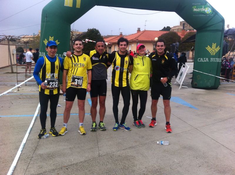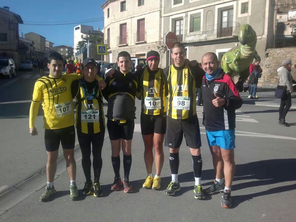 Otro fin de semana super intenso para nuestro Club. El sábado por la mañana, nos desplazábamos seis runnerabejas hasta la localidad de Artajona. La verdad es que la mañana no pintaba muy mal en Azagra, por lo que después de nuestro cafetito de rigor, nos repartimos en los vehículos e iniciamos nuestra andadura hasta una nueva aventura de running.Nada mas salir, nos cruzamos con compañeros nuestros que están entrenando, comandados por nuestro maestro Carlos….es una gozada lo running que es Azagra!! Según avanzamos, observamos como eltiempo emperora de forma significativa, y también, que Artajona esta mas lejos de lo que pensabamos…LLegamos por los pelos, a solo 10 minutos de la salida, por lo que tras convencer a la organización, conseguimos los dorsales, y casi sin calentar, nos encontramos en la linea de salida, con un frio que pela, aderezado de una fina lluvia y también con buenas noticias, pues nos dicen que Rodrigo Mocha, ha sido oro en su categoría. Con esta buena noticia, el frio se soporta mejor, por lo que comenzamos a dar las tres vueltas a esta bonita población navarra. Todo el mundo nos saluda, y todos nos conocen como los del torito de La Behobia, y todos, nos acordamos de Carlos, al que se le echa de menos en estas pruebas. La salida rapidisima, con mucho viento y frio. La prueba no es muy bonita, y hace juego con el día, tampoco tiene mucho miga, si exceptuamos que Pedro se pone en primer lugar en medio de la primera vuelta, puesto que abandona cuando el pulsometro le amenaza con estallar. Tulio y yo le seguimos como podemos, hasta que en la ultima vuelta Tulio le sobrepasa, entrando los tres en un pañuelo de medio minuto, despues, de eso, de una carrera fea pero con tintes epicos por el mal tiempo. Luego vendrían Jesus, gran carrera la suya, Virginia, con un excelente segundo puesto, y Fernando acompañando a una Elena que ha sufrido muchisimo. Tras una buena ducha, degustamos un buen pincho de txistorra acompañado de buen vino, con la gran alegría, del segundo puesto de Virginia, y del primero de Rodrigo…seguimos cosechando triunfos, y coleccionando carreras, y sobre todo, disfrutando del running, aunque sea en dias muy frios y carreras no tan bonitas. Al día siguiente, nos dividimos en cuatro grupos, los que entrenan en Azagra, los valientes que van a la carrera de montaña hasta la Almunia y los que vamos a visitar la localidad de Igea, con su tercera prueba del circuito solo runners y los vilches que van hasta Burlada, esta vez bajo el pabellon de San Adrian. Todos sentimos un poco de envidia de los tres de la Almunia, Guille, Peñas y Rober….nos gusta mucho el monte, pues somos abejas de altura, y vemos sus fotos en las redes sociales con algo de recelo..En Igea, el dia es mestura de gafas de sol y bufandas. El ambiente running total, con el aliciente de encontrarnos rodeados de una aire místico, de una zona singular, en la que durante un tiempo, habitaron los dinosaurios, dejando innumerables muestras de ello. Después de saludar a mucha gente, tomamos la salida con una dura rampa para empezar. Para seguir, mas rampa y después, mas subida….a partir del km 3 comienza un sube y baja que hace que las piernas empiecen a sufrir un poco de mas….yo me encuentro genial, y noto que mis piernas van genial con el terreno…adelanto mucha gente y entre ellos a Tulio. Subo muy rapido y me encuentro muy ligero, disfrutando como un enano todo lo que no pude disfrutar en Artajona. La carrera sigue con constantes toboganes, pero el recorrido es bonito, y el paisaje, sin ser espectacular está muy bien. Cuando mejor me encuentro, noto que los cordones de las zapatillas se me están desatando…que rabia..!!!!. Me tengo que parar durante unos 20 segundos interminables, que hacen que pierda contacto con el grupo con el que había contactado. Además, me cuesta mucho recuperar el ritmo que llevaba…una pena. Me adelantan varios corredores y pierdo fuelle, sin duda, Artajona pasa su factura. Los ultimos 3kms son de fuerte bajada, y contra pronostico, bajo muy bien, recuperando sensaciones, bajando como nunca y hasta adelantando a corredores, cosa que no me había pasado nunca. LLego a la meta super contento, con muy buenas sensaciones, seguido de un sorprendente Fosi, con cara de haber disfrutado mucho y un Tulio que esperaba una carrera mas larga y dura. Mas tarde, llegan los hermanos Oses, que un dia tras otro, nos dan una lección de como afrontar las carreras, de como disfrutar de ellas. Nos duchamos, nos tomamos un pinchito, y nos vamos a casa, con la sensación de haber pasado una buena mañana de running, pero siempre pensando en los heroes, los héroes de la Almunia, que nos mandan fotos con su carrera ya terminada, dando cuenta de buenos platos de jamón y con cara de estar disfrutando como nunca. Lo dicho, un gran fin de semana, un fin de semana RUNNING TOTAL, abarcando muchos frentes, montaña, carreras populares, carreras del circuito, carreras federadas, y mucha gente entrenando por Azagra….se puede pedir mas?…Gracias a tod@s