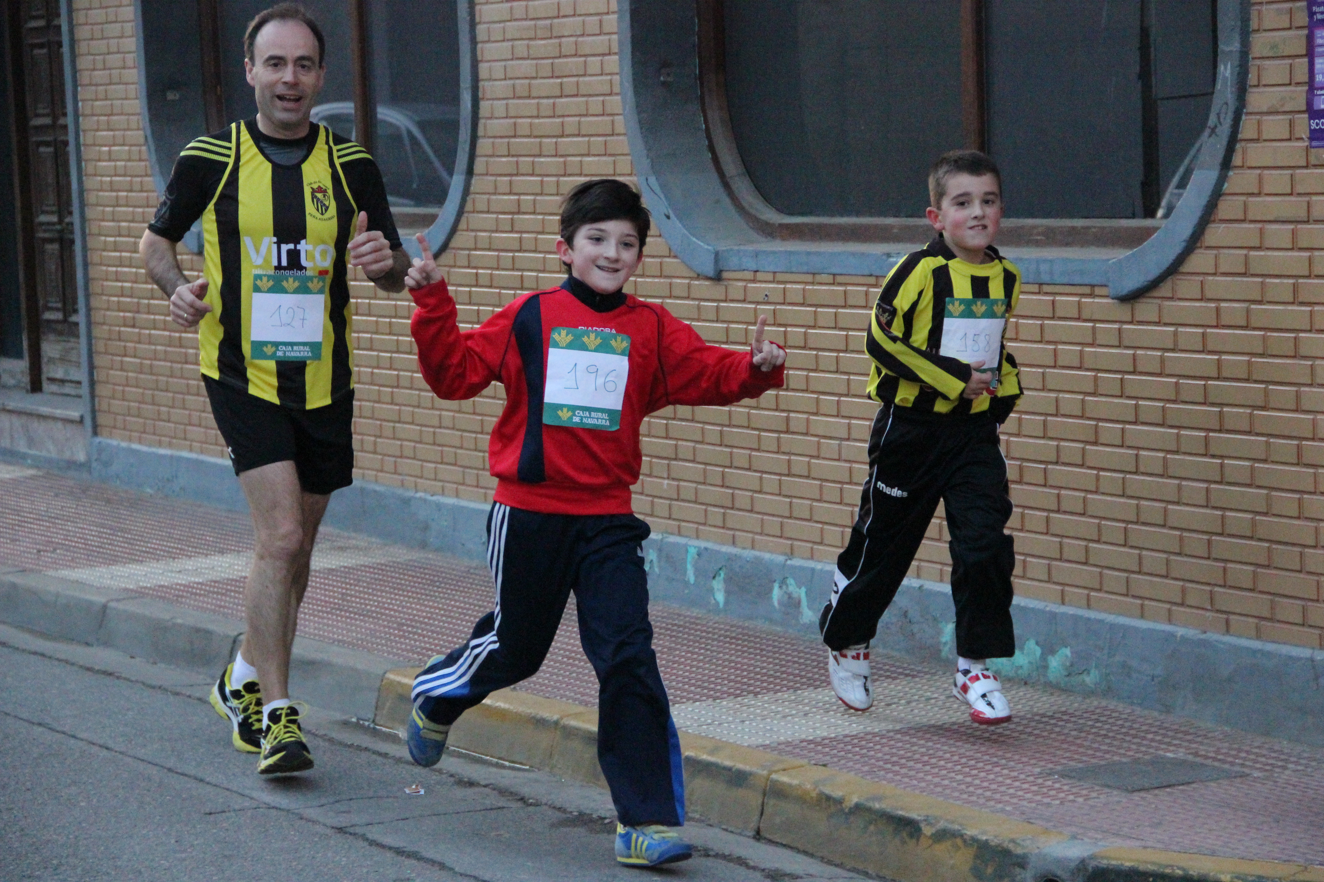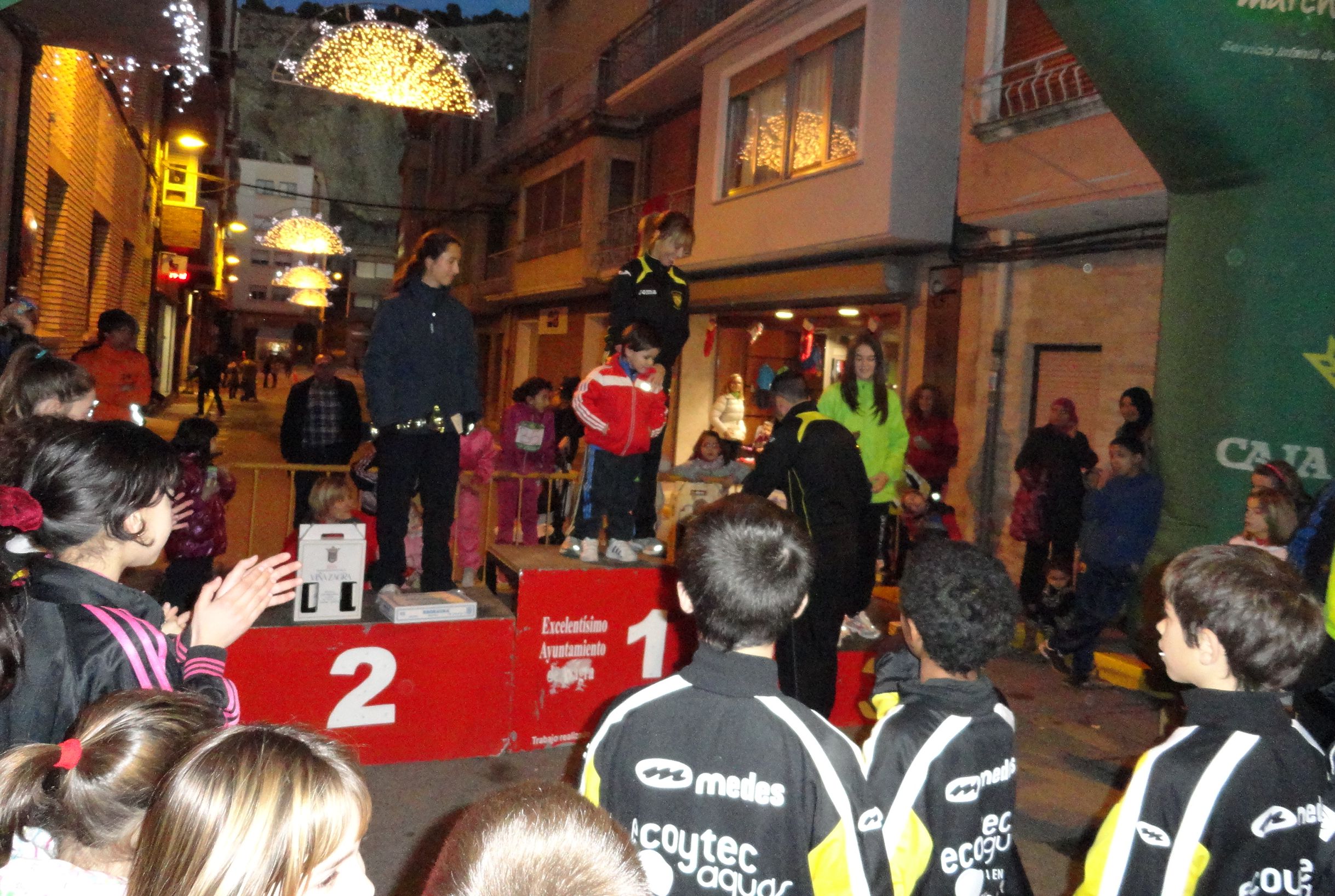 Es curioso como pasa el tiempo, ya nuestra Milla cumple cuatro añitos, cuatro años de nervios, de preocupaciones, pero de muchas satisfacciones, de caras de felicidad de nuestros niños, de caras de orgullo de sus padresy sobre todo, mucho running popular por las calles de Azagra, las calles que han visto crecer a nuestros socios. Me hace gracia como mucho de los que vienen a correr con nosotros, recuerdan con orgullo como participaban en la carrera del encierro, unica carrera que se hacía hace mucho tiempo en Azagra. Sus hijos, si esto no pega un gran cambio, no tendrán que hacer un gran ejercicio de memoria, y verán que correr en Azagra, es normal, que practicar deporte al aire libre es tan corriente como acudir a un partido de futbol. Solo con esto, podemos decir que hemos cumplido el objetivo que teníamos cuando creamos el Club, pero para nada nos conformamos con esto, y queremos mas…mucho mas!!!.El sábado a las 15’30 horas cuando llegabamos a la plaza del Ayto ya estaba todo en funcionamiento, coordinado por Carlos….que decir de Carlos, que no hayamos dicho ya, todo, absolutamente todo lleva su sello, su trabajo, su tenacidad. Es increíble como lo abarca todo, como siempre cuida todos los detalles….llega el primero y es el ultimo que suelta la escoba limpiando la plaza. Pero este sábado mal haría si resalto el trabajo de una solo persona, por que esta Milla ha sido la de todos, todos ayudando, echando una mano para lo que hiciera falta, pendientes de todo, una gozada!!!Solo la pega de que todos queremos ayudar tanto que se nos olvida lo principal…correr..jejeje, pero bueno,..A las 16’30 horas ya estaba todo en orden para empezar con las categorias inferiores. Da gusto ver a los peques correr, con la ilusión que acuden todos los años, es impagable ver la alegría de sus caras y la satisfacción de los padres.Una pena que no pudieramos hacer la carrera de cadetes por falta de participantes…sin duda es una de las deudas que acarreamos de tantos años sin running en Azagra, pero estoy seguro que este será el ultimo año que esto pasará. Por lo demás, todo transcurrió de forma excelente y sin ningún percance. La prueba reina, la de categoría absoluta, contaba con la presencia del ganador del año pasado y gran favorito en este, Xabi Fernandez, mientras en el lado femenino todo aventuraba un bonito duelo entre la ganadora del año pasado, la jovencisima Rebeca Peña y Olmo Vidondo, nuestra corredora mas galardonada, la gran Olmo. Y la carrera cumplió con todos los pronosticos. Xabi ganó con una claridad absoluta, de cabo a rabo, demostrando la calidad que tiene, casi tanta, como de buena gente, un gran campeón corriendo, y una gran persona en la vida. Igor urtasun le sigue completando la tripleta campeona, Jose Antonio Sadaba, ganador de la otra carrera que organizamos, LOS 10KM DEL SOTO, y gran amigo venido de la localidad vecina San Adrian. Por el lado local, buena disputa entre Pedro Delgado y Eugenio Bayona, que se decantó por el lado del segundo, mucho mas acostumbrado a estas distancias. Pero lo mas espectacular de la jornada, nos lo traían las féminas, con un duelo inigualable entre Rebeca y Olmo. El cambio de ritmo efectuado por Olmo, siempre se quedará en nuestra memoria, memorable, dejando atrás a una cansada Rebeca Peñas, que vino desde la localidad riojana de Ezcaray junto con su entrañable familia, solo para disputar nuestra prueba. La cara de satisfacción, del deber cumplido de Olmo, nos pone los pelos de punta, y junto con la victoria de su pequeña, Olmito, en categorias menores, hacen que la jornada en casa de los Jimenez Vidondo sea de color oro. Oro para una reina, para la reina del club y la Milla, OLMO VIDONDO. Completa el podium otra joven corredora, desde Aldeanueva del Ebro, Sandra del Prado. Como corredora local, otra premio para Virginia Castillo,que no solo es gran corredora, sino gran amiga y admiradora de Olmo, lo que nos orgullece como club. Bravo Vir!!!. También hicimos entrega de un trofeo a Maximo Velilla, por toda su carrera dentro del running, por su cuarto puesto en el campeonato de maraton de España en su categoria, por no perderse una carrera nuestra y sobre todo, por su ejemplo. Gracias Maxi por todo. También le dimos un trofeo a Papa Noel, al que le pedimos que nos traiga mas carreras, mas triunfos, pero que nos deje la misma ilusión que siempre, y por que no, unas zapatillas nuevas…jejeje No puedo dejar la Milla sin agradecer su implicación, otra vez, tanto de Guillermo como su mujer, Elena. Los dos son increíbles, y daba gusto verlos correr por Azagra con sus pequeños en el carrito, con los colores de nuestro club. Que grandes los cuatro y que ejemplo para todos, gracias, muchas gracias!!! Y GRACIAS A TODOS LOS SOCIOS/AS QUE AYUDAIS A QUE ESTA CARRERA SE LLEVE A CABO…MUCHAS GRACIAS.