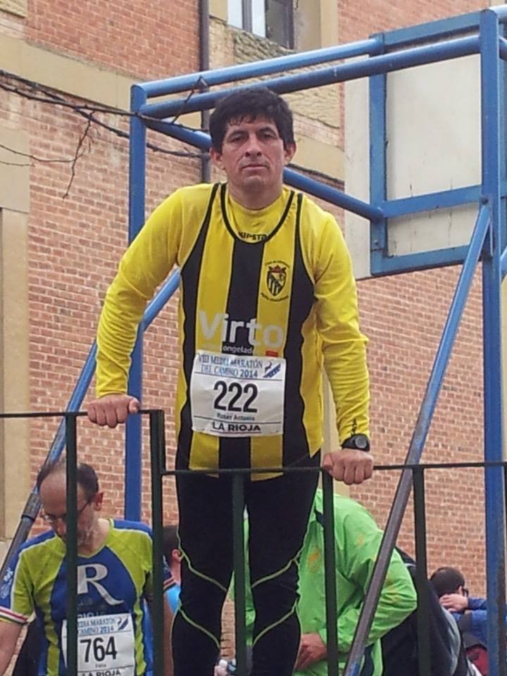 Si bien llevamos unos cuantos fines de semana un poco estancados unos, otros un poco saturados y algunos preparando otras pruebas, siempre, siempre, tendremos a nuestro Robert. Queríamos al hermano, a Tulio, por su clase, por que era el que participaba en carreras, siempre bajo la atenta mirada de Robert, desde la grada. Vinieron los dos, y poco a poco nos dimos cuenta de la suerte que teníamos, pues a la calidad de Tulio, se nos unía un hombre que nunca se cansa, uno de estos casos en que la genetica se ha modificado, donde no existen limites para el esfuerzo físico….un portento llamado Robert. Los martes, en nuestro club ya no son martes, son el día Robert, pues siempre se comenta la carrera de nuestro hombre de hierro, las andanzas de este runner, que es sin duda una de nuestras mejores runnerabejas. Siempre pendiente de acudir a cualquier hora al entrenamiento, nunca pone excusas al esfuerzo, no le conocemos ninguna queja, y no sabemos que haya sufrido nunca ninguna lesión. Atento a todas las carreras, no se deja ninguna por dura o lejana que sea, termina todas, y casi siempre con unos tiempos increíbles, y cuando no, nos da una lección de compañerismo, pero siempre con una dosis muy alta de humildad. Pero es que además de buen corredor, duro, constante y gran persona, es muy valiente, no le detiene nada, ni la montaña mas alta ni la bajada mas pendiente. Es un placer, y una envidia, ver con la determinación que realiza las bajadas y la alegría e ilusión que afronta las carreras de montaña, su gran pasión. Ahora prepara a su perro, que apoco que le aguante, seguro que será campeón en algún canicross. Este fin de semana pasado estuvo en una de las carreras mas significativas del calendario en el mes de marzo, la media del camino. No le gustó mucho la carrera, pues el barro hizo de las suyas, pero disfrutó como siempre, llevando con gran señorio nuestra camiseta y luciendo con orgullo el escudo de nuestro modesto club, delante de 1000 corredores, que seguro, alucinaron con este gran runner, este gran compañero, que mantiene el bastión de nuestro club, en lo mas alto. GRACIAS ROBERT.!!!