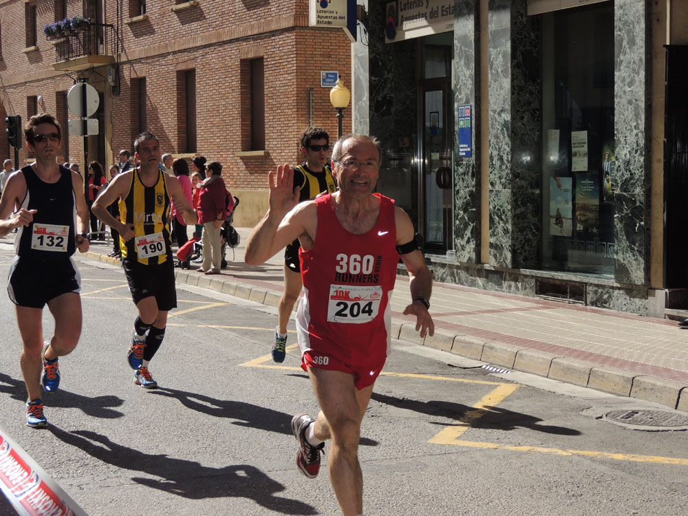 Si existe una carrera apetecible dentro del circuito solo runners, esta es sin duda, la de Calahorra. La proximidad , la gran asistencia de corredores de toda la zona , la oportunidad de correr por una localidad a la que todos los azagreses acudimos como minimo una vez por semana y la buena organización, hacen que esta prueba en honor de la verdura sea irresistible para los runnerabejas. Esta vez, el grupo no es muy numeroso, pues varios socios se han desplazado hasta Falces, donde la féminas han sido las protagonistas logrando varios trofeos. Jesus, Leo, Blas, Pedro, Tulio, Roberto, Carlos y Pablo nos encontramos calentando por unas calles muy conocidas para nosotros, rodeados sobre otros colores, del negro calagurritano y el rojo de los diablos del 360. Se sacan fotos de grupo tremendas de grandes, con infinidad de corredores, mientras nosotros hablamos con Xabi Fernandez, gran corredor, profe de nuestros peques y mejor amigo. Nos sacamos también una foto con el, mucho mas modesta, mas humilde, pero con una afinidad, alegría y compañerismo infinito. No somos un club al uso, con muchos socios de los que la mitad desconocen el nombre de la otra mitad…. somos una familia, pequeña, pero muy bien avenida, donde todos nos ayudamos, donde solo con una mirada ya nos entendemos. No competimos entre nosotros, exceptuando piques muy sanos y jocosos, como pueden ser el de Jesús con Victor o el propio Jesús con sus 45 minutos. Siempre hemos querido el running como una competición contra nosotros mismos, contra nuestros limites y debilidades. No somos marquistas, y el garmin es un extra de apoyo contra el que nunca luchamos. Tampoco somos escaparates donde se exhiben las ultimas zapas de moda, con la camiseta mas «in» y el pantalón de maxima tendencia. No. Somos runners que tenemos la suerte de pertenecer a una gran familia, el Club Atletismo Peña Azagresa. Pero esto no se ha logrado solo, no es magía, no se ha hecho sin esfuerzo de todos. Ha costado casi cuatro años, el paso de muchos corredores de Azagra, que algunos siguen y muchos no . Se ha forjado con mucho sudor, muchas carreras, muchos kilometros con subidas, bajadas, caidas, lesiones, alegrías, penas, mucho frío, mucho calor…abrazos, miradas complices, alientos, animos…ilusiones. No debemos olvidar, que construir nuestra pequeña pero fuerte casa ha costado mucho y que destruirla, debe costar, porlo menos, lo mismo. ahora, nuestra «colmena» donde se crían nuestras futuras abejas, a las ordenes de Xabi, debe ser un motivo de alegría, de perspectiva, de futuro y sobre todo, de reconocimiento al esfuerzo de todos, que día tras día, hemos confiado en nuestro Club. Con estas trágalas en mi cabeza, empezamos a correr, muy rápido, con una temperatura excelente, con bastantes grados, que garantizan una ultima vuelta durilla. La transición invierno al casi verano, suele costar al principio, y estas carreras pueden ser peligrosas para algunos corredores, no acostumbrados todavía al calor. Tulio ha salido a toda pastilla, seguido de su hermano Robert al que intento seguir con todas mis fuerzas. Por detrás, Pedro y Fosi han establecido un tandem poderoso del que se descolgado un Jesús que ha realizado una salida fulgurante. Carlos, con el que he venido corriendo desde Azagra, adopta una estratégia inteligente y sale un poco mas despacio. Mas atrás, Leo y Blas se ayudan para realizar otra gran carrera, para cumplir su verdadero objetivo, disfrutar del running. Tras una primera vuelta muy rápida, me doy cuenta que estoy al límite, y que mi cuerpo se ha quedado de repente vacío de energia. Comprendo que la carrera se me va a hacer muy dura, por lo que decido ralentizar mi marcha para intentar recuperar un poco. Roberto se me aleja mientras se me acercan Fosi y Pedro. Me ofrecen su ayuda, pero voy mas justo de lo que pensaba, y les animo a continuar hacia adelante. Cada km que avanzo, se multiplica por cien la sensación de vacio, de estar totalmente sin fuerzas, y en mi cabeza acude con mucha intensidad la idea del abandono….me hago el sueco, y pienso en otras cosas….en Valvanera, observo a Tulio, que va como un tiro, que no se viene abajo como le pasa algunas veces y estoy seguro que hoy va a realizar una gran carrera. Detrás veo a su hermano, Robert, como siempre dando todo, dejandose el alma, sabiendo que tenemos sus ojos en el, pues representa todos los valores del club. Su camiseta, que con tanto orgullo lleva, acabará empapada de polen que sirve para construir toda la ilusión del club. Un poco después, un Pedrito cansado del turno de noche, pero con clase para todo un día, avanza con su magnifico trote, con la templanza ya del joven guerrero zurzido ya en batallas, en la que su impetu ha sido rebajado, pero que ha ganado en inteligencia, saber estar, y sobre todo en empezar a disfrutar de este bello deporte sin tanta presión. Le sigue el siempre sorprendente Fosi, que cada dia crece mas, con una seguridad aplastante en si mismo, y , con orgullo de pertenecer al club al que de una forma u otra, siempre ha defendido desde bien pequeño. Esta carrera le servirá, para realizar su mejor marca en los 10km, y para reforzar lo que en su fuero interno ya sabía, que puede bastante mas de lo que el se quiere hacer creer. La tercera vuelta, ya no es un calvario, es un sufrimiento al limite…..por momentos, los dolores son muy intensos, y mis piernas me piden parar. No funcionan. Mucha gente me pasa literalmente por encima. Mis amigos Alex y Nerea me dan muchos animos. Gran pareja de runners, muy buena gente, que recorren toda la zona de Navarra y La rioja participando en inumerables carreras…muchas gracias parejilla!!! Mas y mas corredores, pasan a mi lado y mis sufridas piernas me piden parar….realizo algunos metros andando, y oigo del público al que no puedo casi ni ver, muchos gritos de animo personalido. No sabía que me conocía tanta gente….intento volver a correr, miro para atrás y veo que Carl