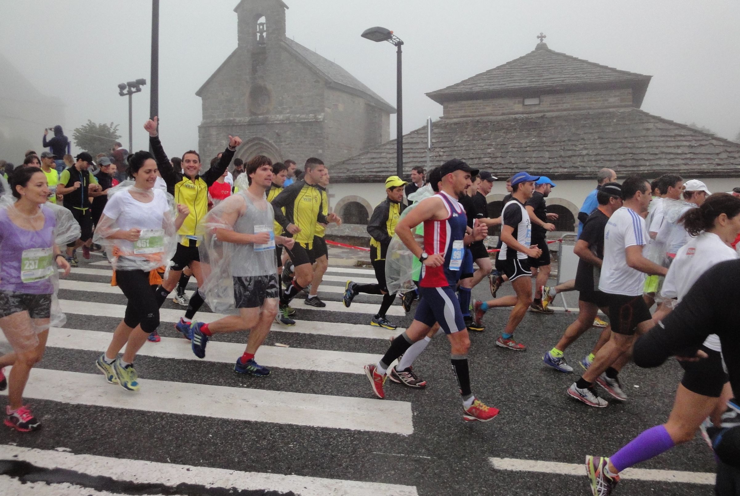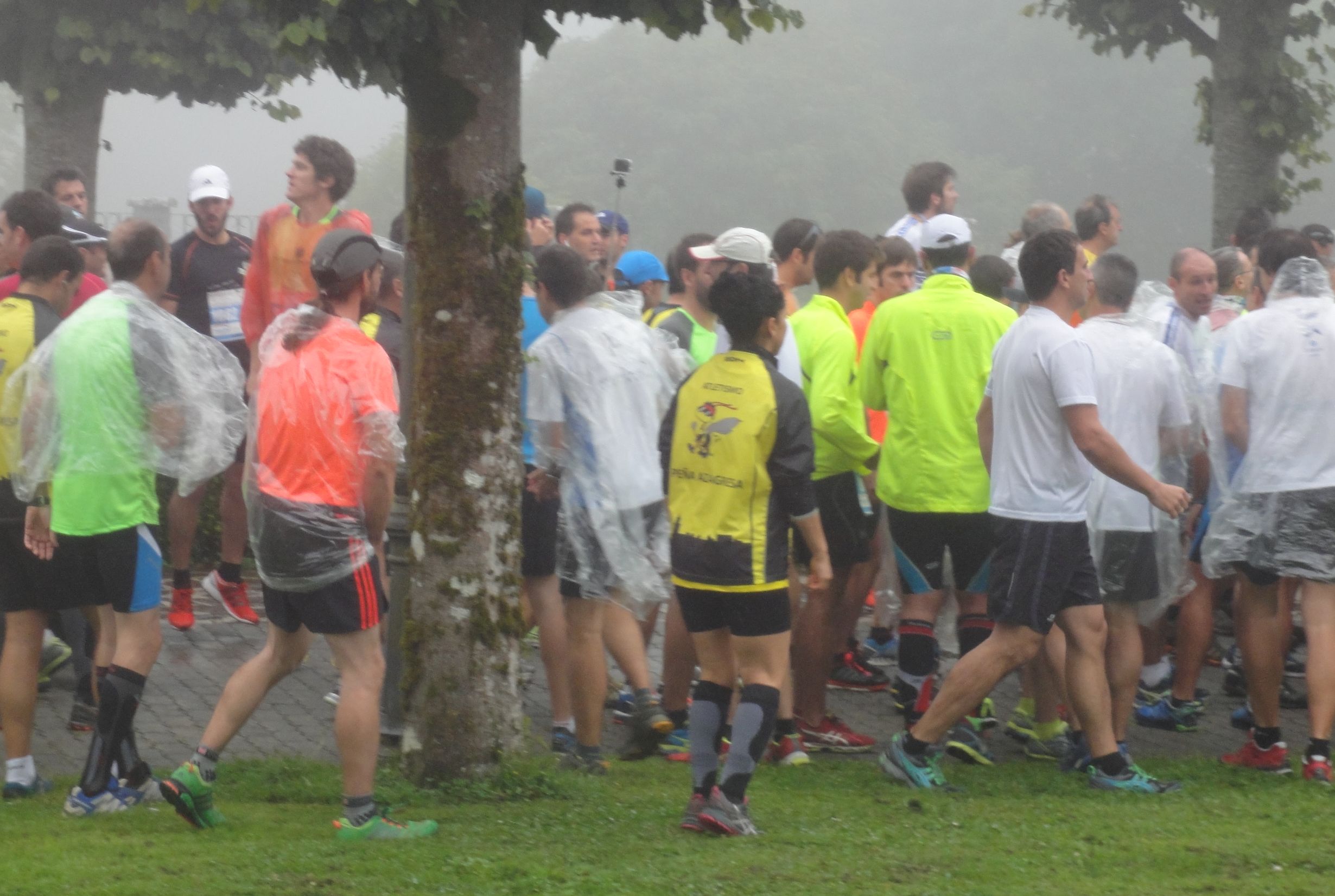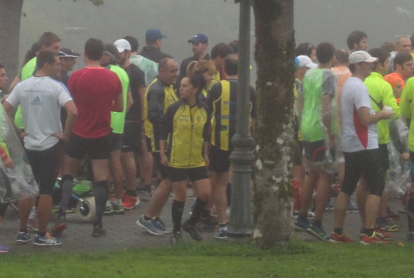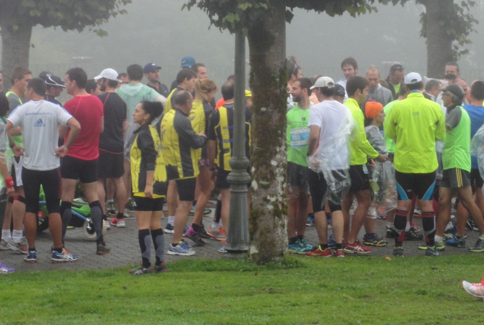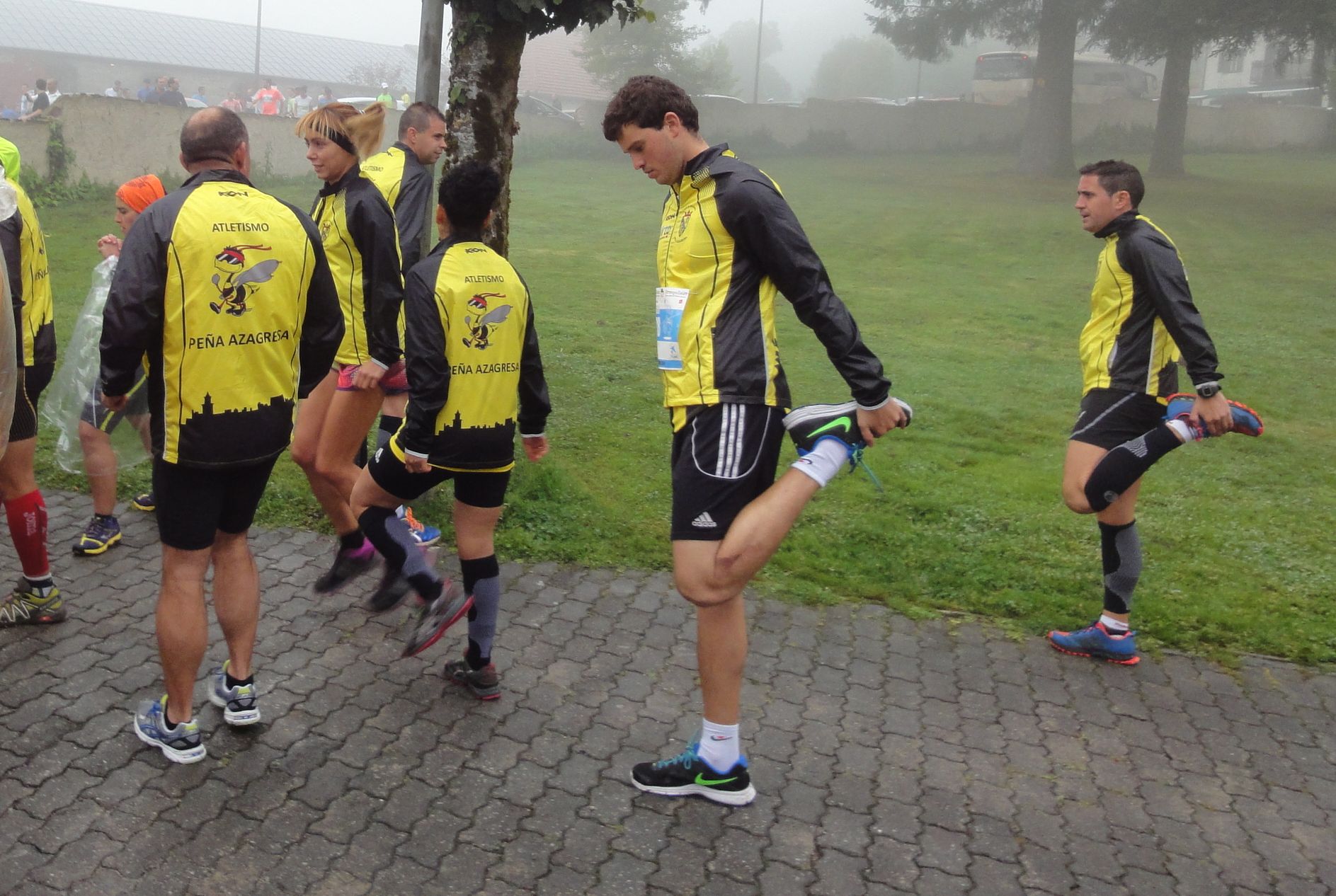 Deprisa, deprisa!!! las 7’35 y yo todavía en la cama…el maldito móvil no ha sonado y me he quedado dormido…café rápido y de magdalena un iboprufeno 600, que el amigo Marichalar hizo de las suyas ayer…, mientras me pongo lo primero que me encuentro..uffff …que tarde, me limpio los dientes y doy un poco de tiempo a que se cargue el móvil que ya tenía que estar cargado, si los duendecillos de la electrónica no lo hubieran impedido…dinero, llaves, el movil al 20 por ciento y para la calle…hayyyy!!!! se me había olvidado que tengo la pierna fastidiada…dichoso Aquiles!!!.Por fin llego al lugar de encuentro, el bar Venecia, donde supuestamente tienen que estar todos esperando dentro del autobus…pero cual es mi sorpresa que ni están todos ni está el autobús todavía!!! Miro a Blas, con cara de mosqueo , y me dice que ya ha hablado con el chofer, pero que se ha perdido por el pueblo, y que faltan corredores que se han ido al Leyre…pues creían que se salía desde allí…me enfado mas todavía, pero no con ellos, sino conmigo por no haber dejado todas las cosas bien claras desde un principio..espero que esto me sirva de experiencia. Finalmente, van viniendo unos y otros y el autobús también aparece. Nos montamos, y empieza el viaje hacia la fantástica Media Maratón Roncesvalles-zubiri. Nada mas y nada menos que 18 corredores de Azagra, de nuestro Club…INCREIBLE!!! .Tras un tranquilo viaje, llegamos hasta Zubiri, donde Pablo sola, su novia Paula y Gorka, se subirán al autobús para llegar hasta Roncesvalles. Cada uno se reparte su dorsal que de forma muy amable nos ha cogido Gorka el día anterior e iniciamos la marcha al lugar emblemático de la salida…y mi estomago empieza a encontrarse bastante mal…uffff. La primera curva y mi mareo se agarran como si fueran hermanos .El paisaje es totalmente bucólico. El incipiente olor a pino, mezclado con la humedad de la lluvia, hacen todo mas triste y, lejos de mitigar, realzan mi sensación de malestar. En un respiro, veo la cara de Gorka, veo sus ojos apuntando al frente, con ganas de comerse el mundo, mirada lejana pero segura, mientras sus palabras meditadas retumban en mi cabeza….pocos mas hablan,pues los nervios ya empiezan a florecer entre los miembros de la expedición. Lo agradezco, agradezco ese silencio que hace mas fácil y llevadero el mal estado en el que me encuentro. Me concentro en llegar hasta Roncesvalles, para una vez allí, poder bajarme de ese autobús que en este momento me parece infernal..y poder respirar, refrescarme…enfrente tengo a Blas, que apoyado sobre el asiento, escucha con atención a Gorka…quien le iba a decir hace bien poco a Blas, que iba a ir con su mujer e hijo hasta Roncesvalles para correr una media maratón…quien se lo iba a imaginar??? El autobús se detiene, ya va quedando menos para llegar, pero el trasiego de vehículos en un sentido y en otro, hacen que se forme un pequeño «tapón» en la travesía de unos pueblos donde la tranquilidad es la tónica, y donde por un día al año, todo se trastoca. Vamos un poco retrasados, y los nervios, hacen que mi estómago se resienta mas todavía. Victor, el gran Victor, junto a Blas, se bajan del autobús, y tras unas pequeñas indicaciones, resuelven el entuerto y el tráfico se vuelve otra vez fluido. Por la cabeza se me pasa el pensamiento que nunca de pensarse en una carrera….que demonios hago yo aquí??? Muy poco a poco, llegamos al lugar de destino, y me bajo del autobús casi sin esperar a que abran las puertas….no fijo en el ambiente, pero me doy cuenta que hace un frío que pela…las ganas de vomitar se me pasan, y observo como todos las runnerabejas corren para sacarse la foto de rigor….la envidia se apodera de mi, y pienso como han podido sacarse la foto, sin ni siquiera tener la deferencia de llamarme…glups!!!! y siento pena de mi mismo!!!…..cada vez mas recuperado, me doy cuenta de que el ambiente es ideal, y que el frío y las gotillas de humedad no empañan la locura por el running popular que allí se vive. Veo los ojos de Olmo, un poco asustada, temblorosa, observo a Carlos Vidondo, siempre riendo, siempre positivo, llega Pedrito, que ha ido por libre con unos amigos, seguro, tranquilo, con ganas de revancha de una carrera que se le atraganto bastante el año pasado, miro a Pablo, que tiene una mirada de complicidad con su novia, ….el bravo de Fran Justicia lucha con su GPS, y Gorka no encuentra una talla de cortavientos que le sirva de abrigo mientras espera…. Guillermo y Nacho Losantos hablan de la carrera, mientras Nacho Narvaez parece estar ya imaginando la gran carrera que pretende realizar…pasan corredores de otros clubs que nos miran con cierta envidia, mientras comentan lo sorprendidos que están con el running en Azagra. Como casi siempre, sin darnos cuenta, dan la salida, y de repente me doy cuenta que el mundo se ha parado….no entiendo por que yo no corro….que hago quieto, por que no avanzo?…..la sensación es super extraña, y una espesa decepción vestida de depresión me invade. Los acompañante de los corredores le han dicho al chofer que van a visitar la colegiata y alrededores, por lo que me tomo un cafe de amargura endulzado con la amabilidad y buena compañía de la mujer de Blas y de Roberto. Cuando todos se han ido, y después de varios desplantes del para nada simpático conductor del autobús, iniciamos el viaje hasta Zubiri, para ver la llegada de los nuestros. Nada mas pasar el primer pueblo, primera sorpresa,…el autobús se para y se monta Peñas con otro corredor… Los dos llevan cara de desilusión 1- 5-Les digo que no pasa nada, que lo importante es haberlo intentado, y que, las lesiones acompañadas de el indeseado abandono, entran dentro de las previsiones a la hora de afrontar una carrera…aunque se de sobra que mis palabras no va a servir de nada a un apenado Peñas…el y otro chaval de Olite se ven obligados a abandonar en el km 3 aproximadam