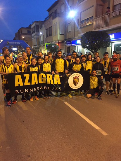 Antes de comenzar ya se respiraba un ambiente estupendo, con una temperatura extraordinaria (nos lo merecíamos después de la ciclo génesis explosiva del año anterior) y ya nos íbamos viniendo arriba. Cuando nuestro presi Carlos desplegaba la pancarta de Azagra Runner Abejas allí aparecíamos todos revoloteando orgullosos de pertenecer a este club y nuestro espíritu de equipo se multiplicaba exponencialmente. Sabíamos que ser el equipo más numeroso estaba complicado pero lo íbamos a intentar.