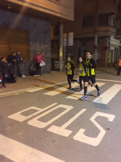 Tal y como estaba previsto cuando se hizo de noche dieron el pistoletazo de salida y comenzó la aventura esta vez eran 10 km tanto para chicos como para chicas para lo cual teníamos que dar tres vueltas a un circuito urbano. Con un ambiente sensacional y animados por música, publico, voluntarios fuimos llegando a meta: Markos, Pedrito, Paulo, Pablo Gainza, Henry, Xavi, Olmo, Carlos Aguilar, Tulio, Rodrigo Rober, Fosi, Javier Valle, Jesús, Mamen, Carlos Vidondo, Edurne, Helena, Susana y Javier, Leo, Itsaso, Esther, Fran Peñas, Mari José y Marina.
