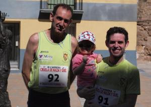 Mientras algun@s restañabamos las heridas provocadas por los excesos de una cena inolvidable, Carlos y Guillermo, participaban el la carrera de clausura del circuito solorunners. Sobre las 08 de la mañana, partían nuestros dos representantes hasta la localidad de Quel, para participar en el último episodio de esta gran serie de carreras que nuestros amigos del Calagurris han organizado, siendo este el tercer año ya, lo que ha provocado que todos los runners de la zona tengamos un montón de carreras en localidades cercanas en las que participar y que no haya que recorrer grandes distancias como antaño cuando uno quería tomar parte en alguna carrera. Muchas gracias a Felix y a David, por crear este circuito. Pues bien,como decíamos, nuestros dos valientes, (Guillermo también estuvo en la cena y se fue a casa a las tantas…) estuvieron como siempre, a su altura. Guillermo descubrió que no hay mejor compañero que Carlos, y Carlos le enseñó a Guillermo como debe correr un veterano, como se marcan los tiempos, como se dosifica un runner en una carrera, pero sobre todo le demostró que un runner de verdad, cuanto mejor y mas carreras encima lleva, es mas humilde y mejor compañero. Fueron los dos juntos, en una carrera que es mas dura que lo que al principio se antoja, con fuertes subidas al inicio del circuito de dos vueltas y con bastante calor, pero que tiene un recorrido bonito y agradable. Al final, 47 minutos mas o menos para los dos, buenas sensaciones y la satisfacción de haber pasado una buena mañana de running, uno aprendiendo del mejor, y otro enseñando al mejor aprendiz. BRAVO CAMPEONES Y GRACIAS POR SER COMO SOIS.